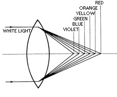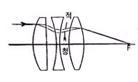 10. 렌즈를 통과한 빛이 색마다 나뉘어 초점이 맺히는 것을 막기 위해서, 다른 성질의 렌즈를 붙입니다. 그렇게 해서 각각의 색이 지나는 경로를 조절하여 하나의 초점으로 모이게 만듭니다. -> 축상 색수차의 보정