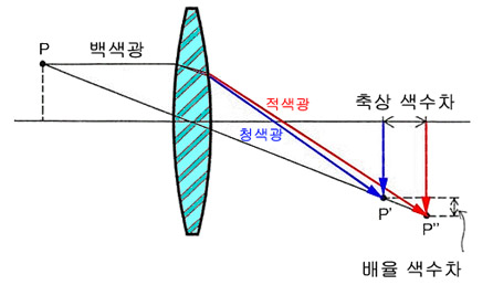 9. 또, 색상별로 지나가는 경로가 틀리기 때문에 각각의 색에 따른 상의 크기가 달라 경계면이 일치하지 않는 현상이 발생합니다.-> 배율 색수차