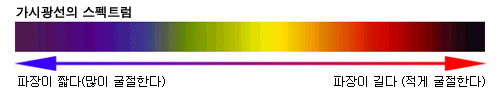 2. 파장에 따라서 서로다른 매질의 경계면에서 굴절되는 정도가 차이납니다.