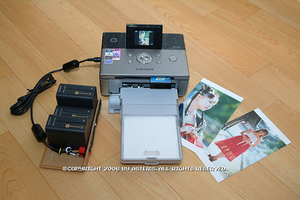 가장 큰 문제는 다른 포토 프린터를 가지고 있는 상황에서 또 사긴 뭐하다는 것이다. 그래서 착수한 것이, 지금 쓰고 있는 포토 프린터 SPP-2040을 SPP-2040p(가칭, Portable)로 만드는 것. 처음엔 AA전지로 시도되었으나 전류량을 만족시키지 못해 다른 방법을 찾기 시작, 결국 찾아낸 것이 SONY의 무지막지한 F-960등의 캠코더 배터리를 쓰는 것이었다. 집에 있는 것들을 사용했으므로 추가비용은 크게 들지 않았다.