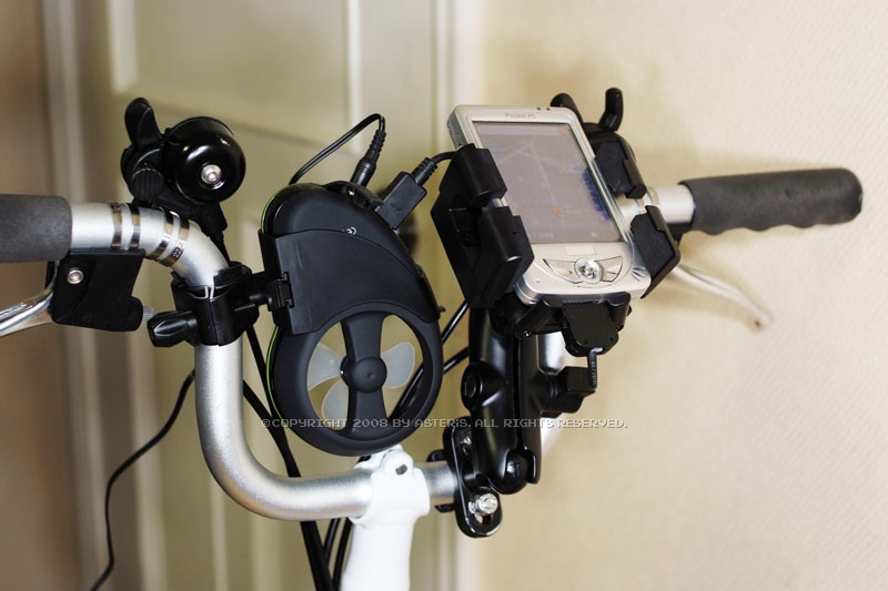 배터리로 구동하던 내비 시스템을 풍력 발전 시스템으로 교체.