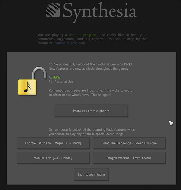 피아노를 재밌게 배울 수 있게 만들어주는 프로그램. 기본 셋은 무료인데 악보 표시기능과 학습 기능등을 활성화 시키려면 $16을 지불해야 한다.