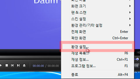 팟 플레이어 위에 커서를 놓고 S5오른쪽의 C버튼을 누르고 환경설정을 골라줍니다.
