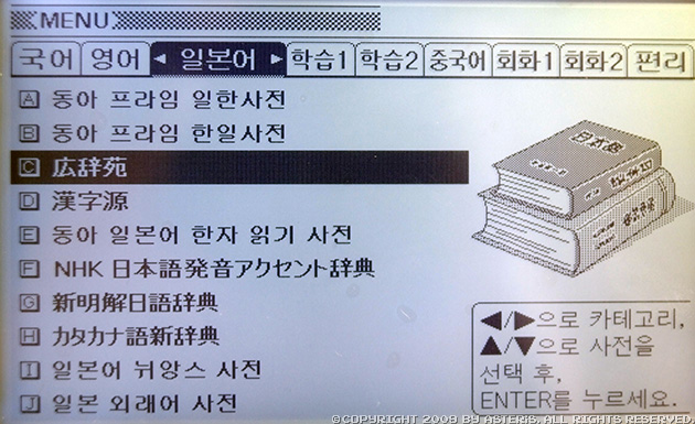 전자 사전이라는 장점을 하나도 활용하지 못하고, 단지 “이만큼 사전이 많이 들어 있다”라는 스펙을 자랑하는데 급급하다 보니 언어의 특수성이 전혀 반영되질 않았다. 단지 종이 사전처럼 콘텐츠들이 쌓여만 있을 뿐이다. 그래서 전자 사전임에도 종이 사전처럼 일본어 한자 읽기 사전에서 발음을 찾고, 그것으로 히라가나로 검색해서 뜻을 알아내는 과정을 거쳐야 한다.