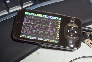 시대가 좋아져서 휴대형 오실로 스코프도 팔더군요. 성능이 우수하진 않습니다만, 가벼운 취미 전자 공작에는 딱 맞습니다. 내가 만든 회로에서 전기가 어떻게 흐르고 있고, 전압은 어떻게 변하는가를 눈으로 보여주는데 이 정도 성능이면 충분하기 때문입니다.