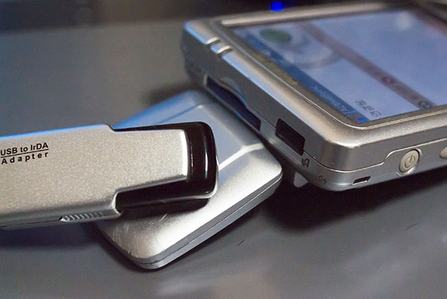 그냥 쓰는 거라면 상관없지만, 맵피나, 아이나비를 업글하고 인증받으려면 PDA가 PC에 물려야하니 난감했다. 그렇다고 뜯고 USB선을 따내서 직접 연결해줄 수도 없고… 고민하던 차에 PDA내장 싱크에 IrDA로 연결하는 옵션이 있는 걸 알게되었다. 바로 IrDA동글을 구해서 테스트.