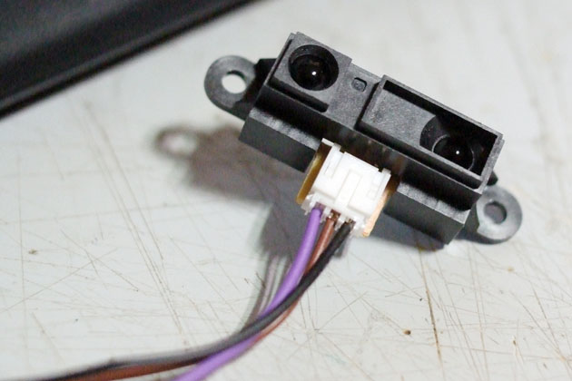 SHARP의 GP2Y0A21YK센서다. 대략 10~80cm 거리를 측정할 수 있는데, 전원을 넣어주면 거리에 따라 출력 전압이 변하는 단순한 구조의 센서다.