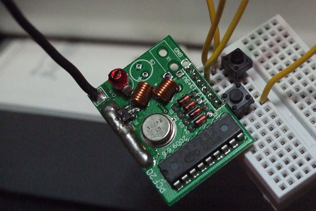 RF-TX모듈을 이용해서 간단히 만든 리모콘. 좌우 깜박이에 해당합니다.