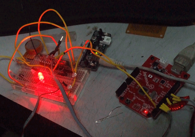 수신부가 장착된 본체. 물론, 내장할 땐 마이크로 컨트롤러는 M168로 바꿀 생각입니다. 재패니노는 막테스트용 보드.