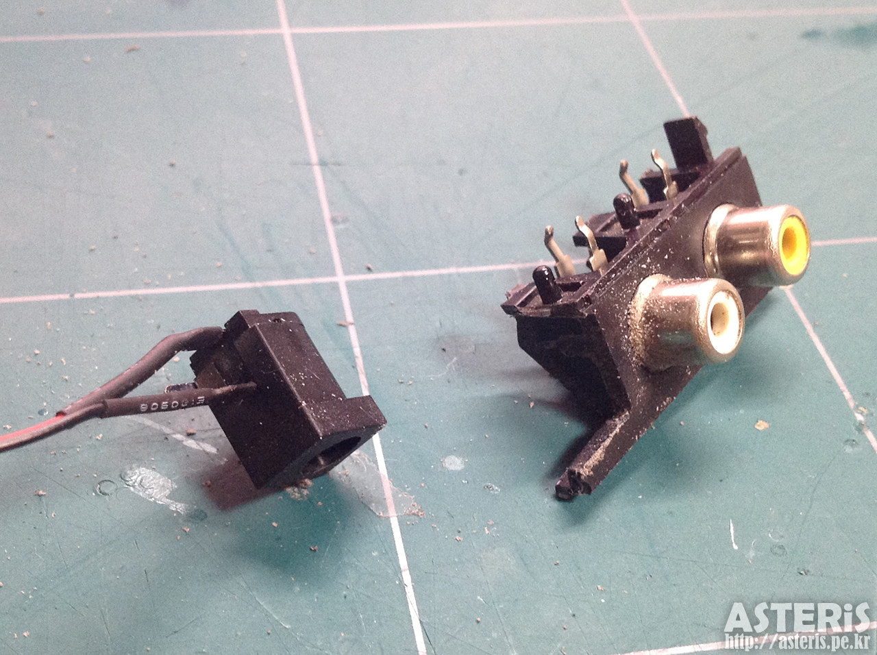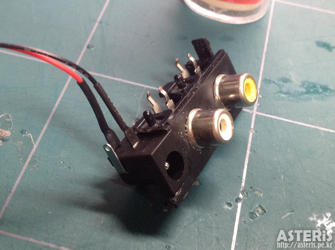 또 다시, 부품함을 뒤져서 예전에 사놓은(…) 컴포지트 단자를 꺼냅니다. 모노입력을 받을 것이므로 빨간 단자는 잘라내고, 거기에 어댑터 끼울 녀석을 붙여줍니다.