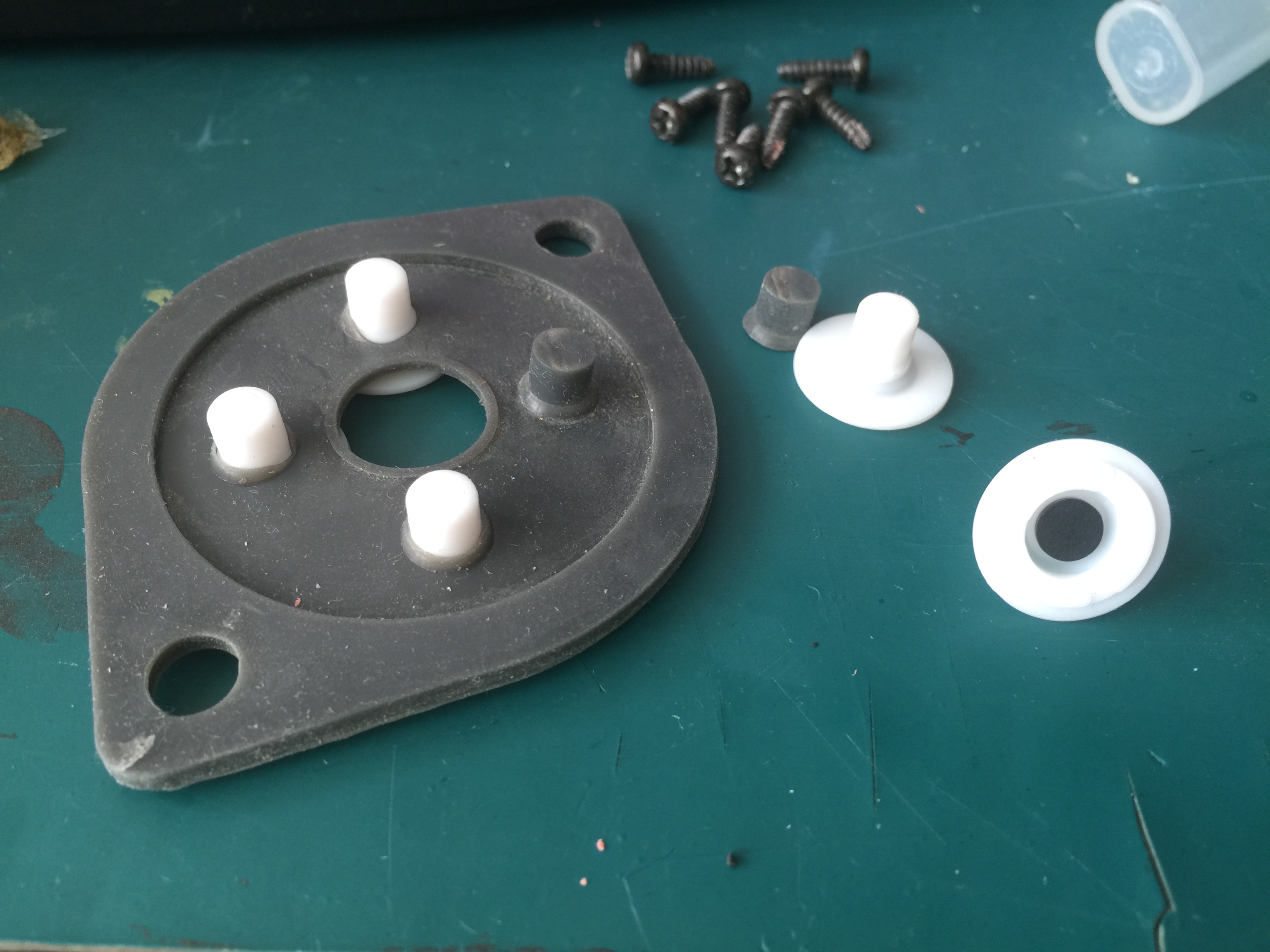 남아있는 다리도 과감히 잘라내고 끼워줍니다. 이때 원래 고무패드부분을 뒤집어서 안으로 패인 부분이 밑으로 가도록 해줍니다. 아무래도 그게 덜 눌려서 교체한 고무패드 수명에 조금이나마 도움이 되겠지요.