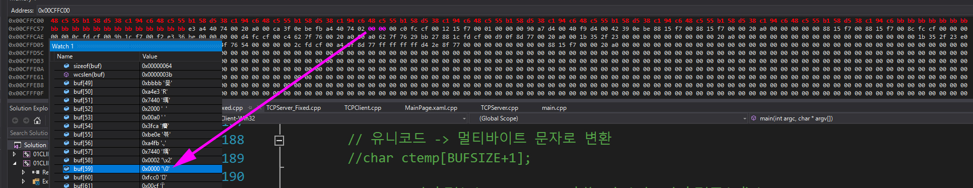 sizeof(buf) = 100(0x64) (2byte씩 50자)으로 맞게 나오는데, wcslen(buf)= 59(0x3b)(메모리 상태에 따라 다름)로 나온다. _s를 쓰거나 최대사이즈를 정해줘야하나?