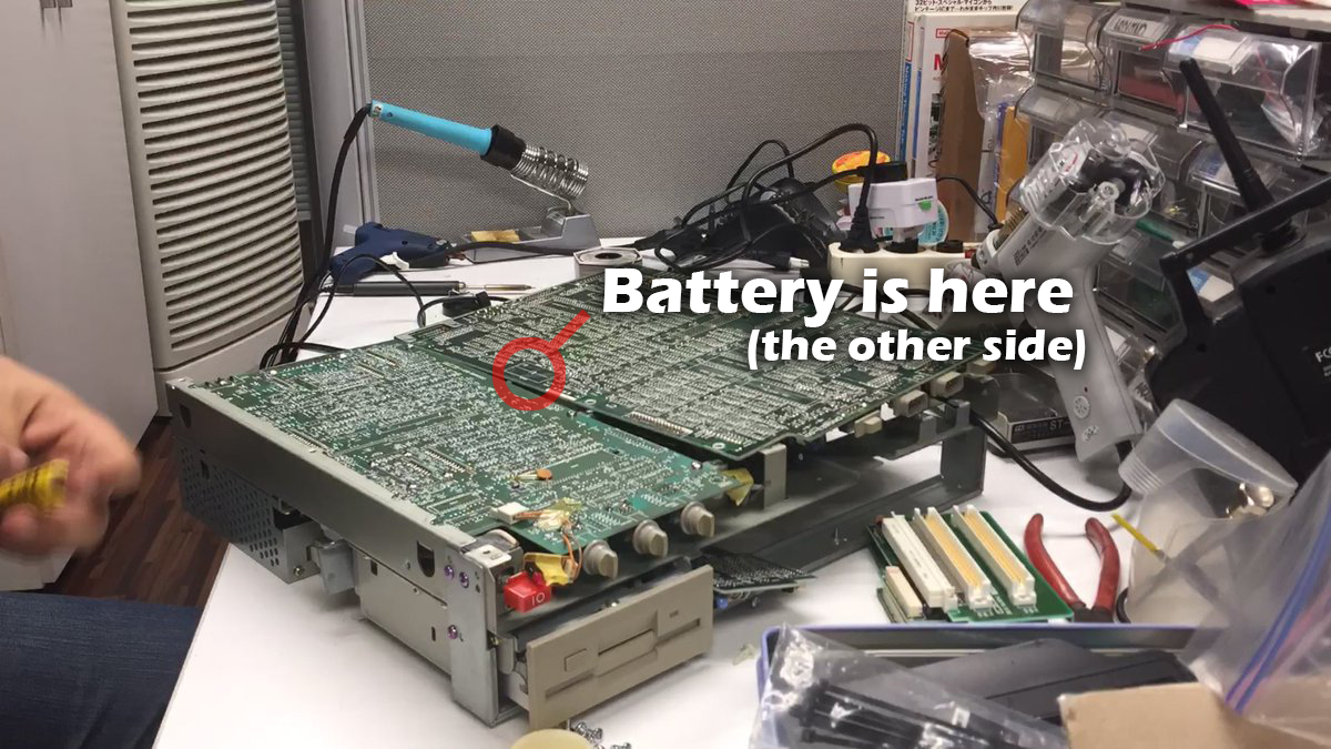 일단 메모리 보드, FDC, 확장슬롯을 다 뽑아낸 다음, 앞판과 뒷판을 뜯고 밑판에서 큰 보드를 뜯고 세워서 땜질된 배터리를 분리해야한다.