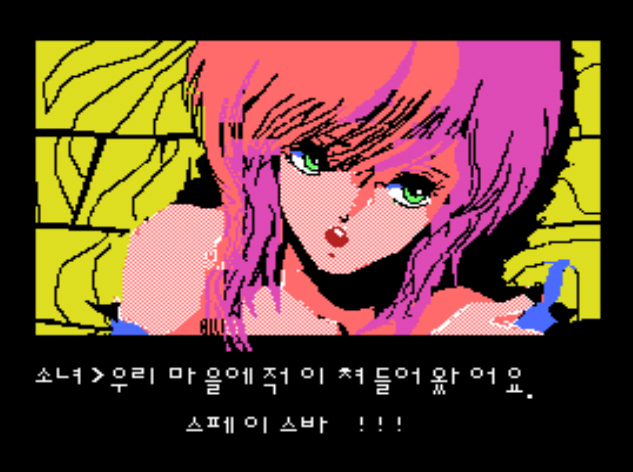 그리고, 성녀전설은 MSX 외에도 다른 기종으로도 나와 있는데, PC-88시리즈용의 타이틀 화면과 비교하면 해상도는 떨어지지만 볼에서 이마로 이어지는 곡선이 개인적 취향의 흐름이라 좀 더 부드러운 인상으로 변해서 상대적으로 맘에 든다.