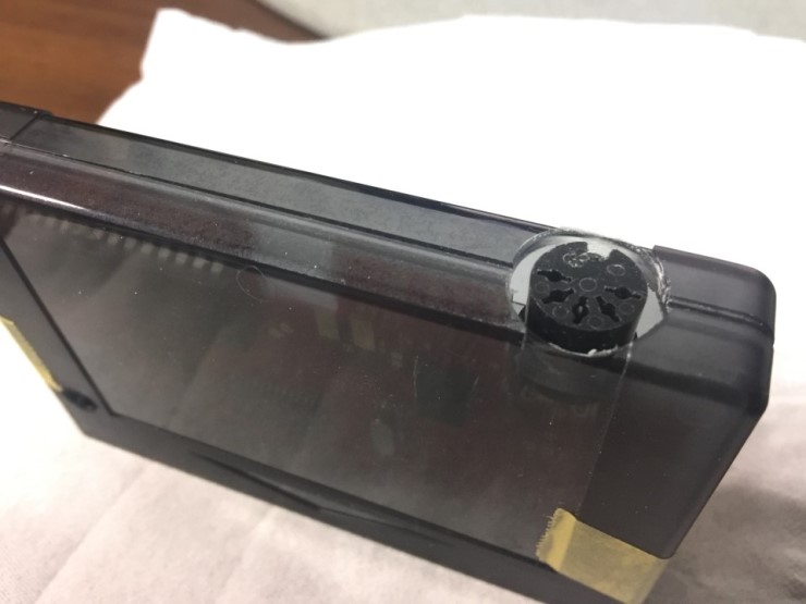 드레멜을 이용해서 대략 15mm정도의 구멍을 뚫어줬다. 처음에는 케이스 뒷면을 잘라내서 공간을 확보하는 방법을 생각했지만 역시 깔끔하게 하려면 이 방법이 적당한듯하다.