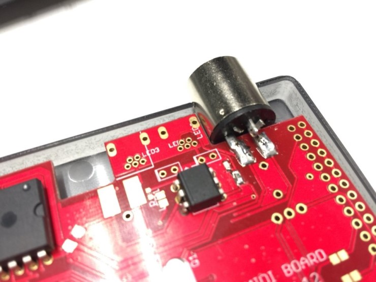 기판을 보면 알겠지만, 왼쪽에 MIDI IN을 위한 접점들이 준비되어있으나 MSX에서 MIDI IN기능을 쓸 일은 극히 드물어서 일단 이번에는 커넥터를 연결하지 않기로 했다. (모든 기능은 제대로 들어있으므로 커넥터만 연결해주면 동작한다.)