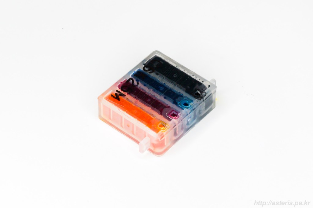 그러나 CMYK 잉크를 머금고 있는 구조므로, 일반적인 잉크젯 프린터용 리필 잉크를 주사기 등으로 계속 채워 쓸 수 있다.