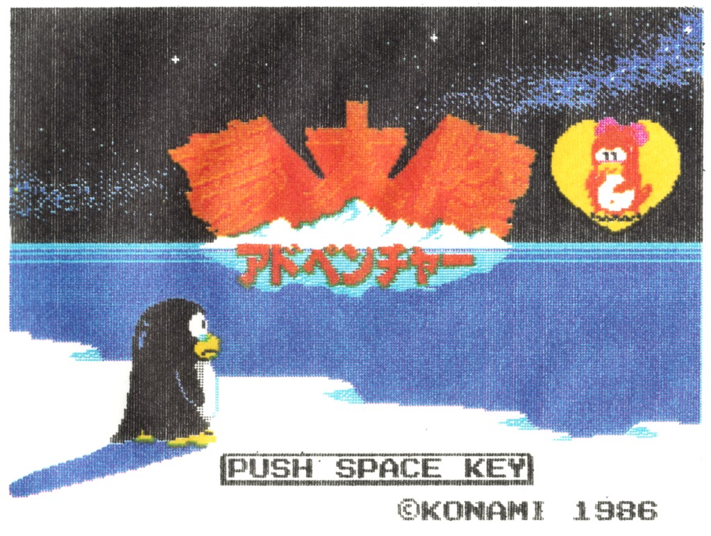 출력에 사용된 게임은 1986년 코나미에서 발매한 꿈 대륙 어드벤쳐(메가롬)이다.