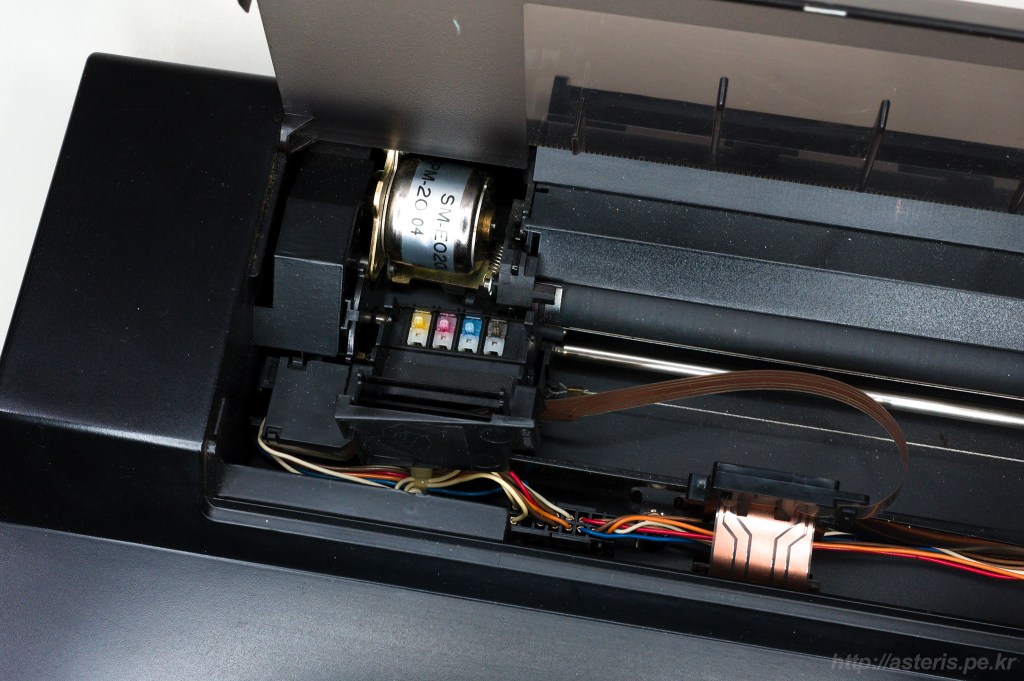 이 제품은 이렇게 직접 헤드가 잉크를 머금고 있다가 종이에 출력하는 방식을 쓰고 있다.