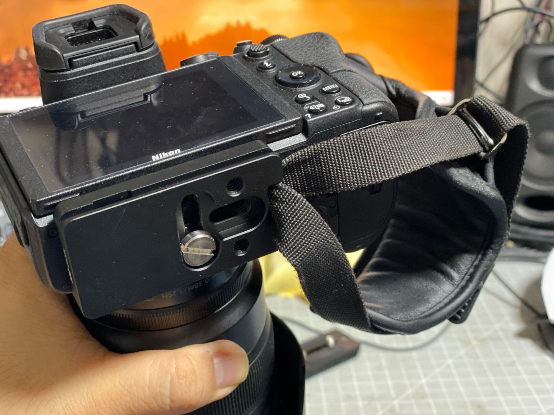또, JJC에서 카메라용 핸드 스트랩을 많이 내서인지 한 쪽에 끈을 걸 수 있게 해 놓았고, 카메라의 삼각대 고정부의 위치에 맞춰 가로 또는 세로 구멍에 스크류를 옮겨 카메라 중간에 플레이트가 위치할 수 있도록 만들어 놓은 게 인상적이다.