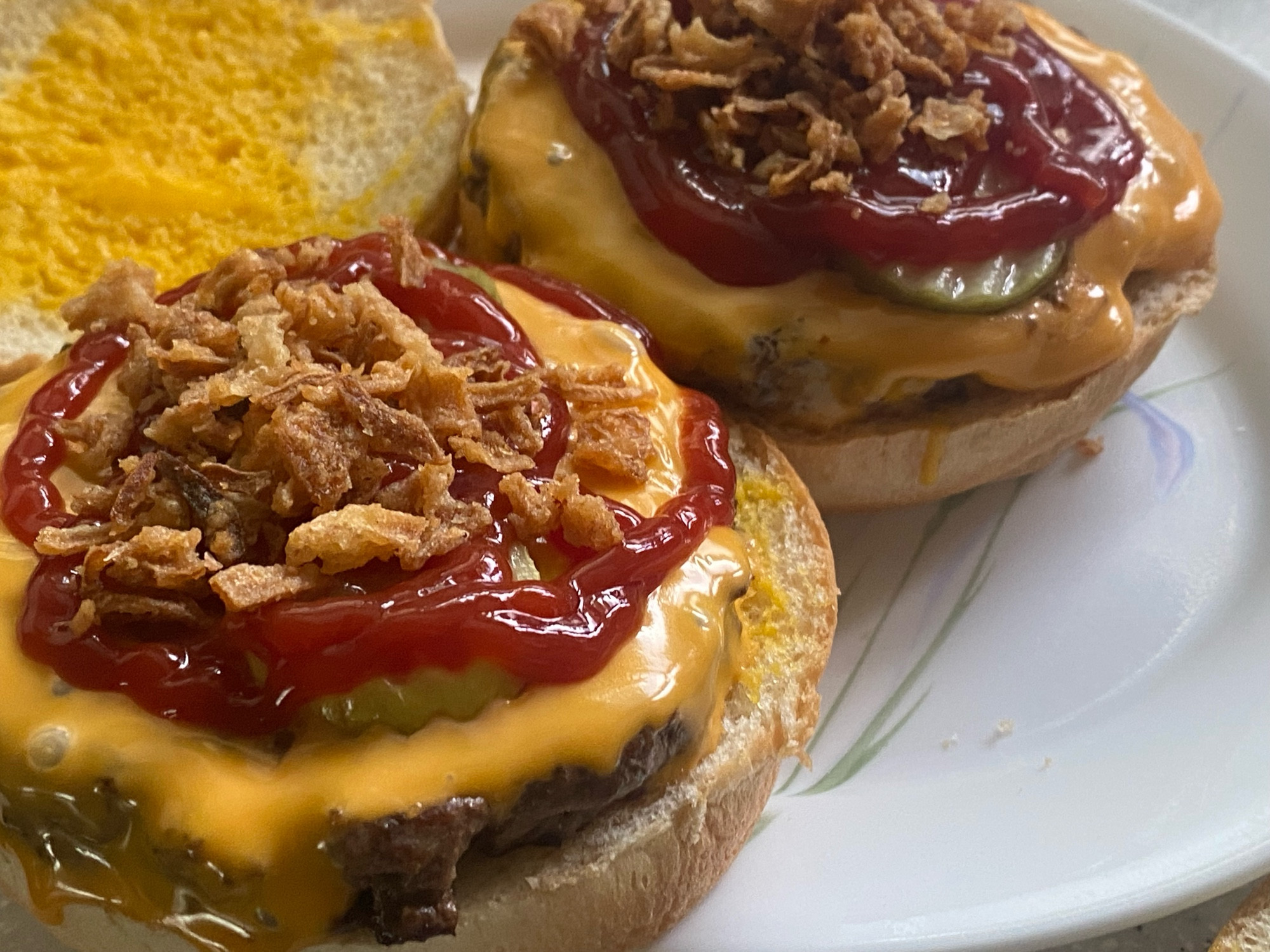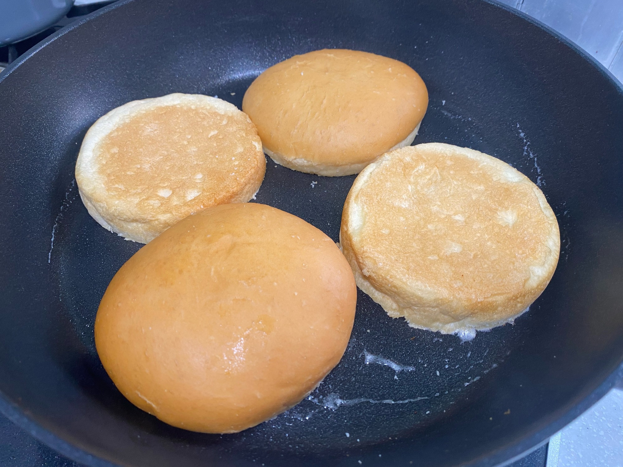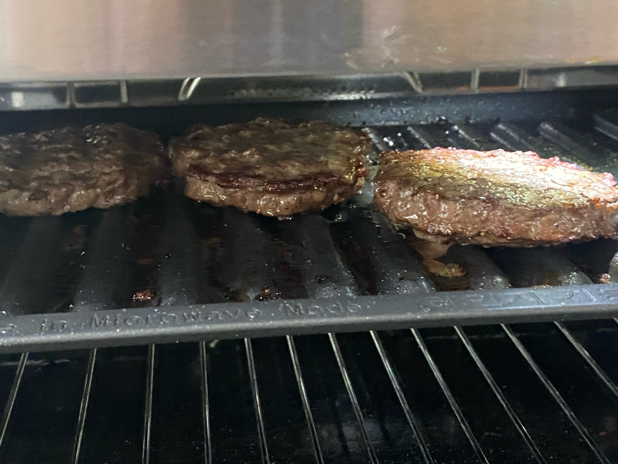 처음엔 오븐에 패티를 구웠는데, 관리도 힘들고 꾹 눌러주지 않아 기름이 빠지면서 조그만해진지라.. 다음번엔 팬에서 굽기로 결정했다. 결정적으로 오븐 내부에서 기름이 온 사방으로 튀는데, 그거 닦아내는 것도 한일이다. 그리고 처음 써본지라 너무 구워진 것과 상술한 것처럼 눌러주지 않아 쪼그라든 것도 별로였다.