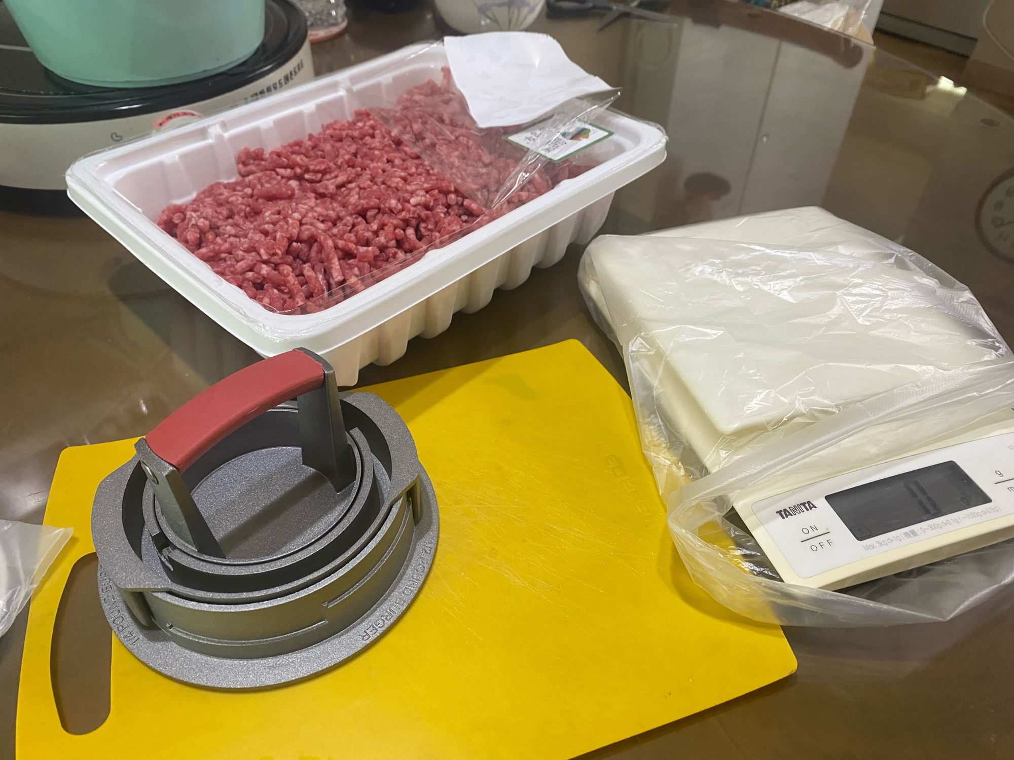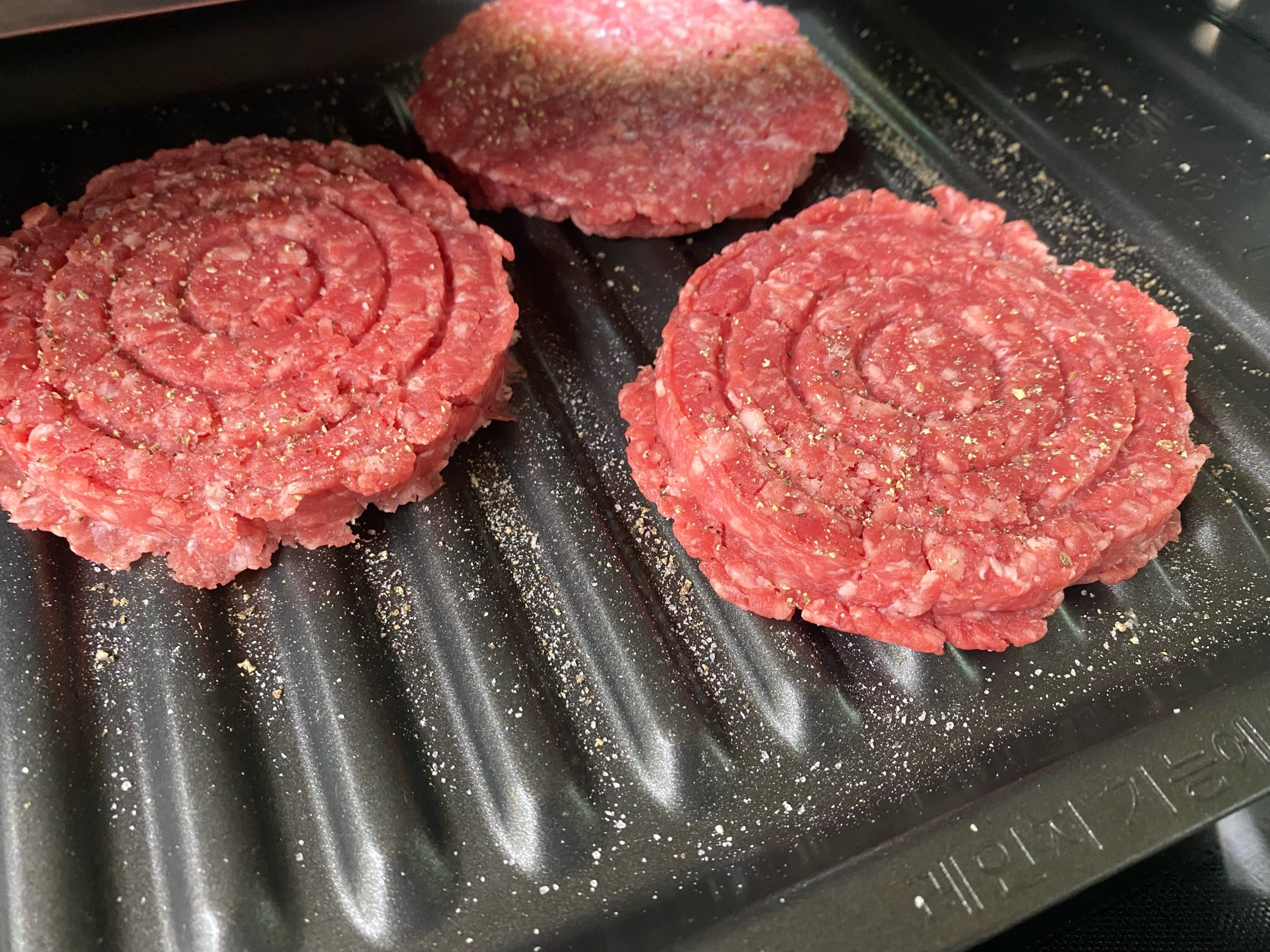 햄버거 패티 메이커를 사서 다진 쇠고기로 패티를 만들었다.