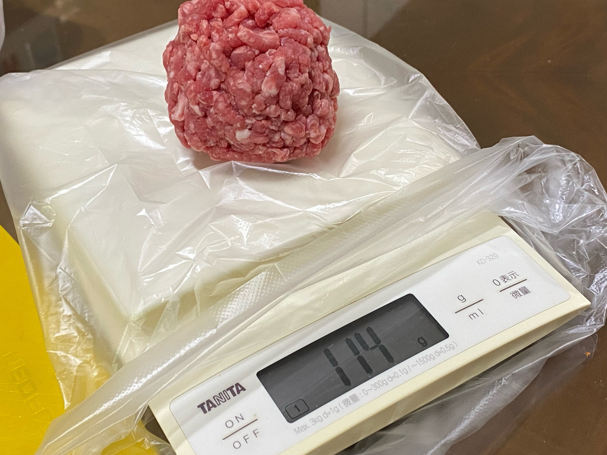 패티당 다진 쇠고기 114g정도를 뭉쳐 쿼터 파운드에 맞췄다. 둥글게 모으고 양손으로 적당히 쳐댄다음 패티메이커 밑에 패티종이를 깔고 틀을 올리고 그 안에 넣은다음 뚜껑으로 꾹 눌러주면 된다.