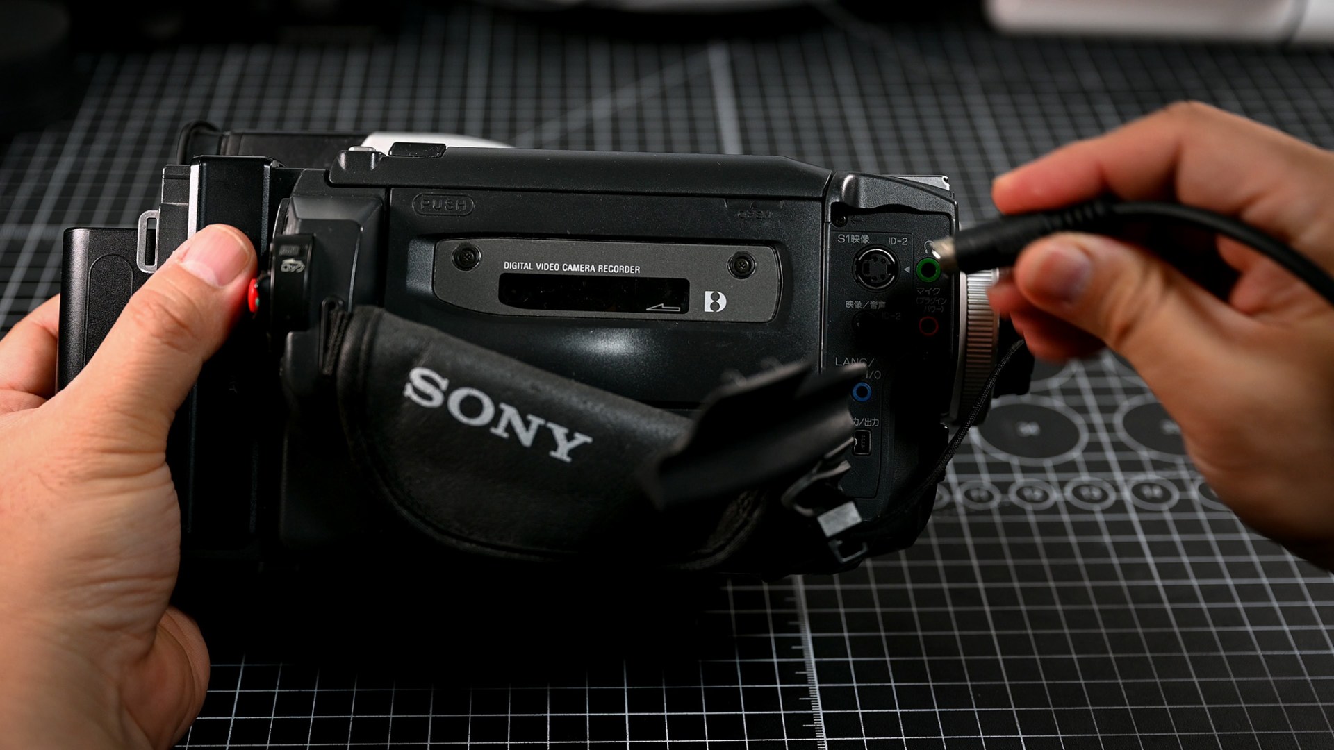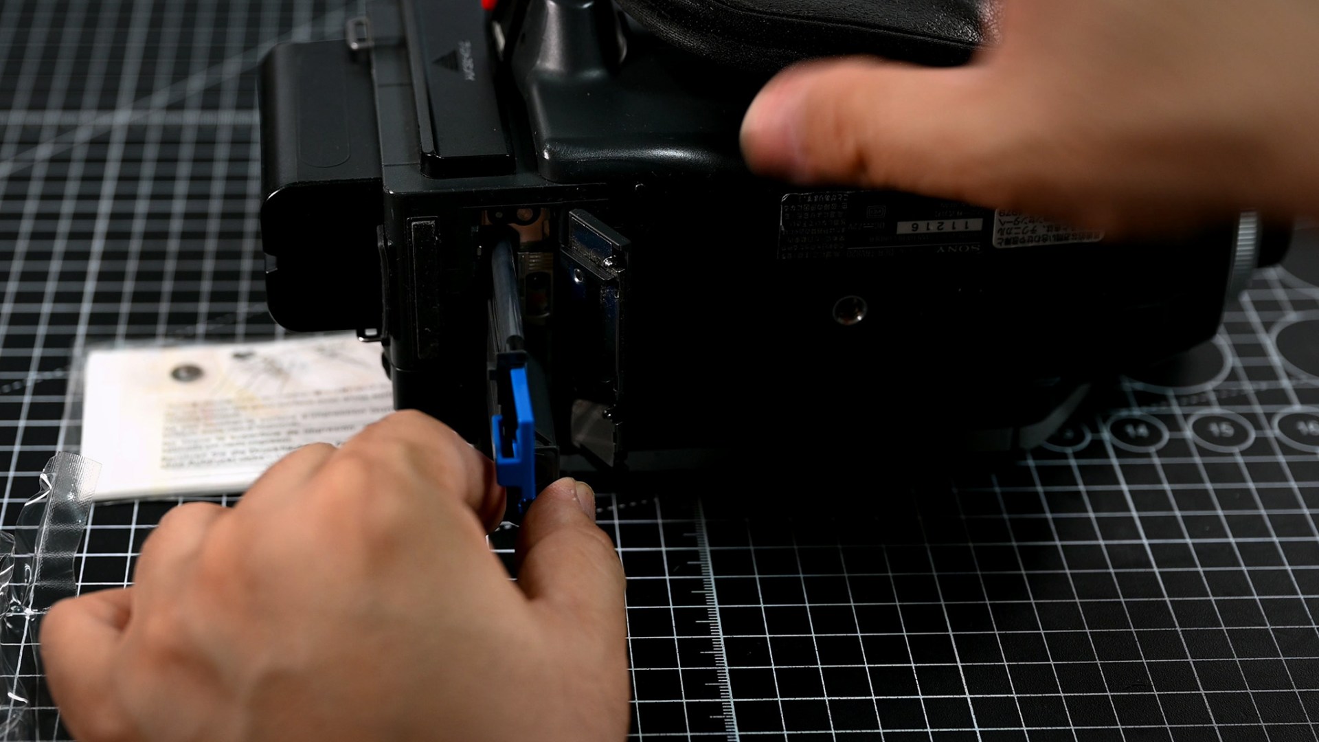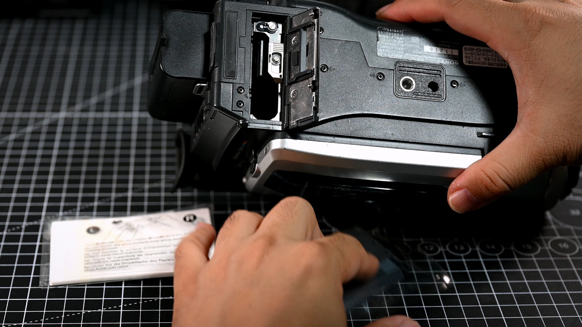 캠코더 하부를 열고