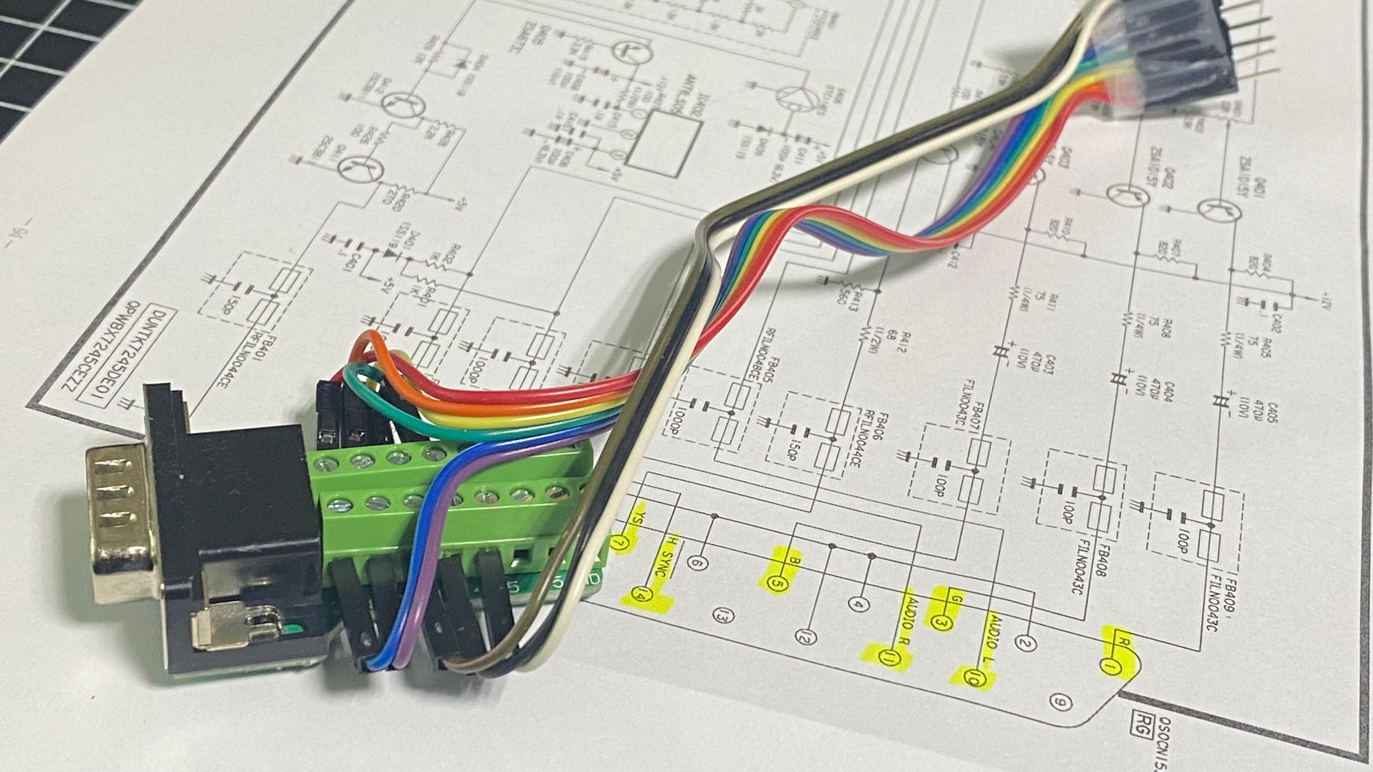 DSUB 2열 15핀 RGBHV단자에서 VGA용 DSUB 3열 15핀으로 변환 테스트