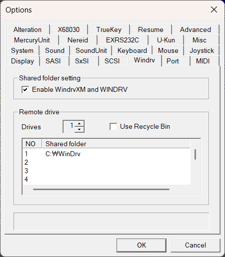 XM6G를 이용해서 호스트 OS와 파일을 교환하는 방법으로 여러가지가 있겠지만 유명한 것이라면 Windrv를 이용한 교환 방법이 있겠다. 이것은 미리 세팅된 HDD이미지와 세트로 호스트 OS의 지정 폴더를 마치 가상 플로피디스크 이미지 처럼 사용하는 방법이다.